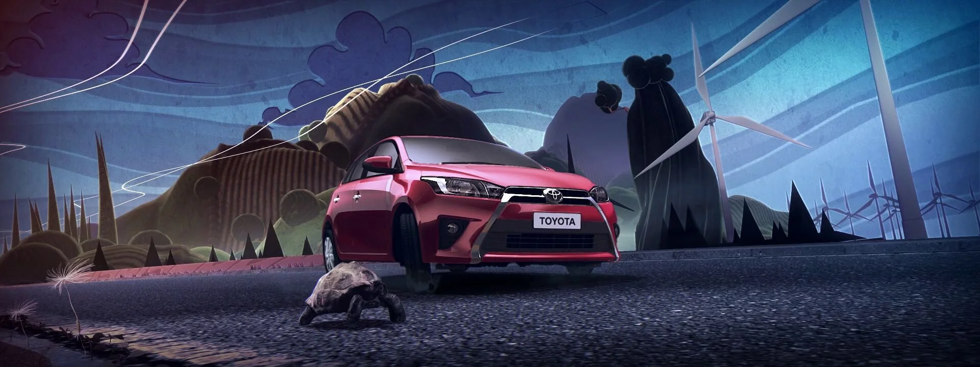 This animation was made by KOO-KI, featuring a Toyota Yaris car racing in a perfect loop for Toyota’s website. My role was rigging, animating and rendering car, while Vito LaManna handled the environment creation and compositing.
